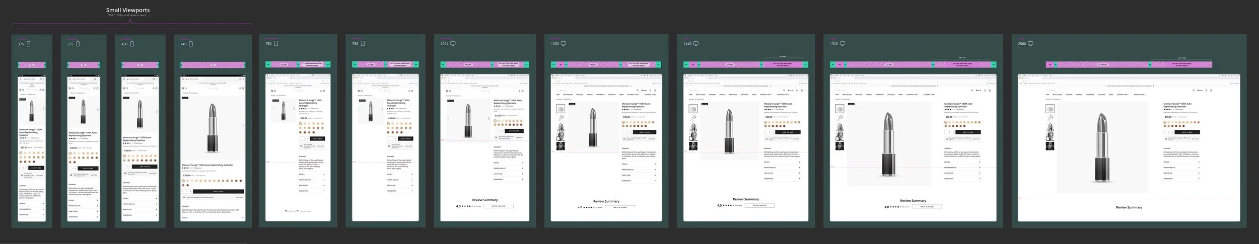 This visual illustrates the enterprise PLP wireframe before and after brand theming is applied, demonstrating how the shared UX foundation adapts to a brand’s visual identity—highlighted here with MAC Cosmetics.